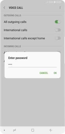Key in your barring password and press OK. The default barring password is 0000.