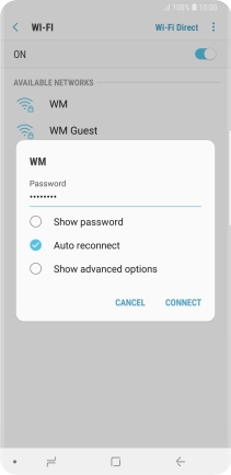If the Wi-Fi network is password protected, a lock icon is displayed next to the name of the Wi-Fi network. You can get the password from the network provider or administrator.