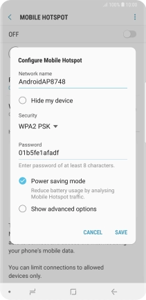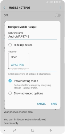 Press WPA2 PSK to password protect your Wi-Fi hotspot.