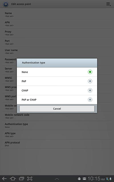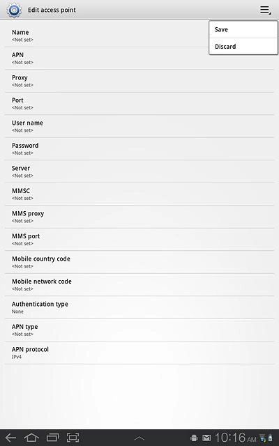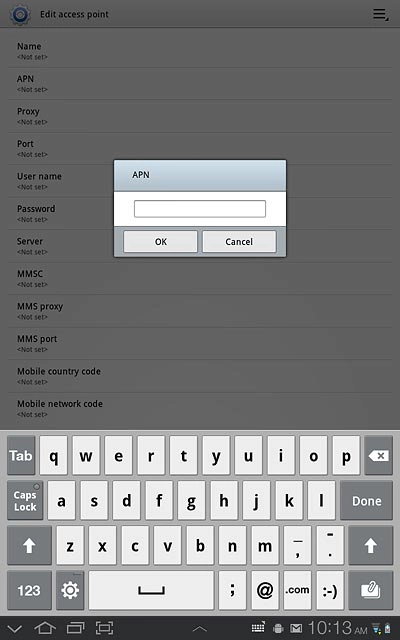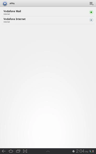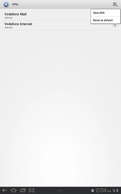 Press the field next to Vodafone Internet to fill in the field.