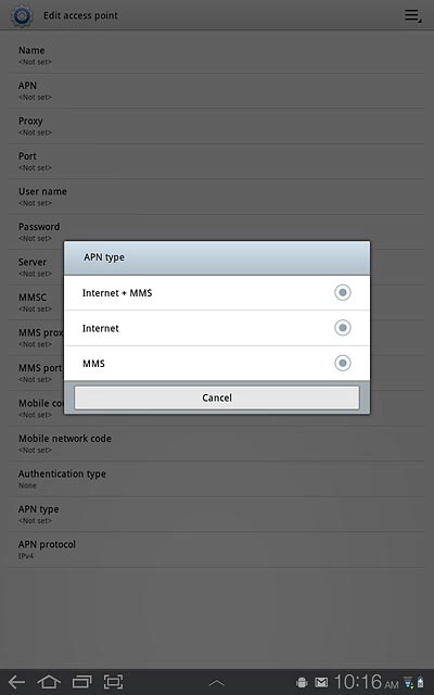 8 Select APN type