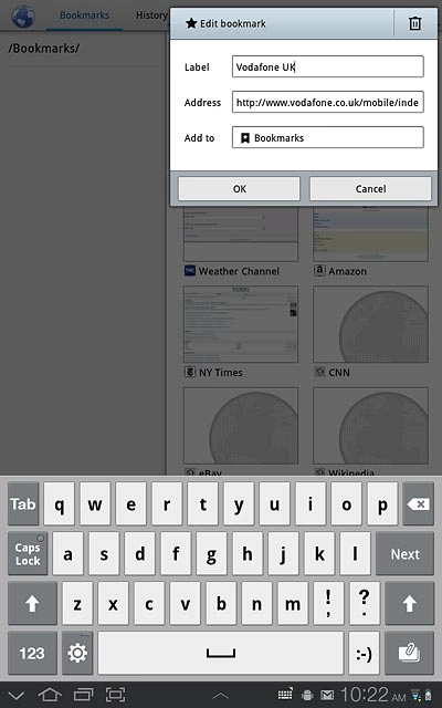 Press the address bar at the top of the display.