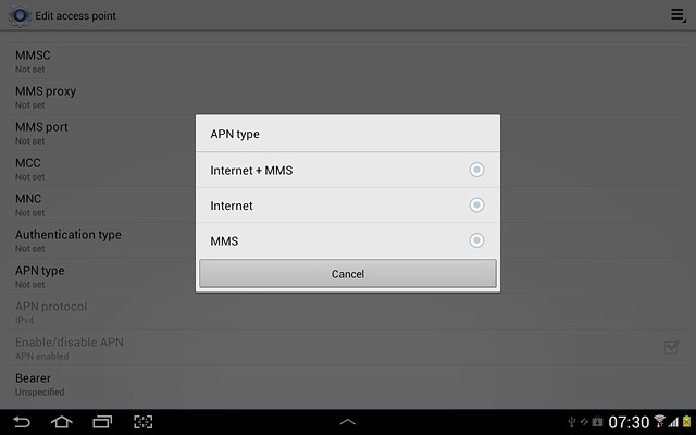 Select APN type