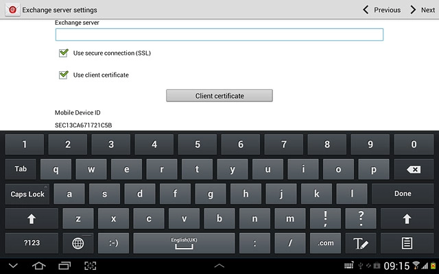 Press the field below Exchange server and key in the server address.