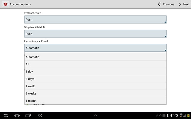 Press the drop down list below Period to sync Email.