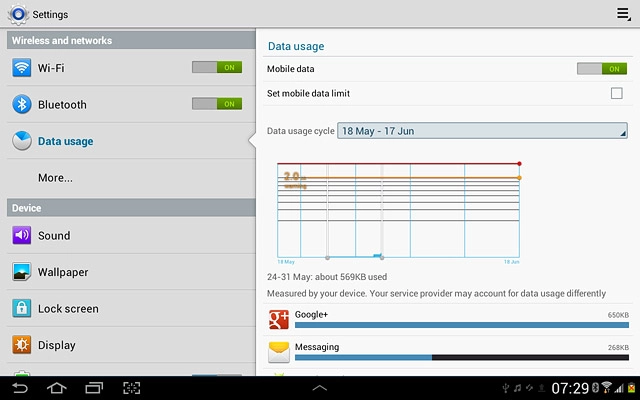 Press Data usage.