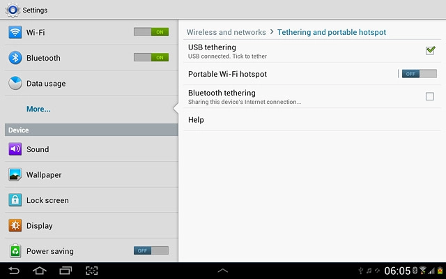 Press USB tethering to turn on tethering.