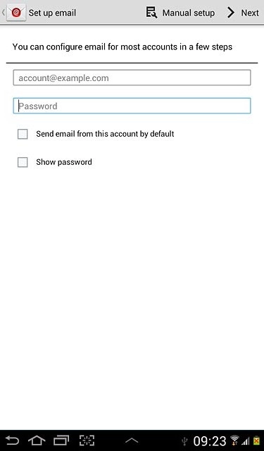 If email accounts have been created already, press the settings icon. Press Settings. Press Add account.