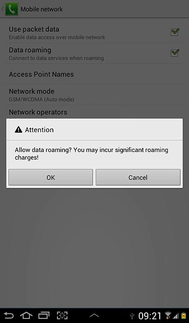 Turn data roaming on or off - Samsung Galaxy Tab 2 7.0