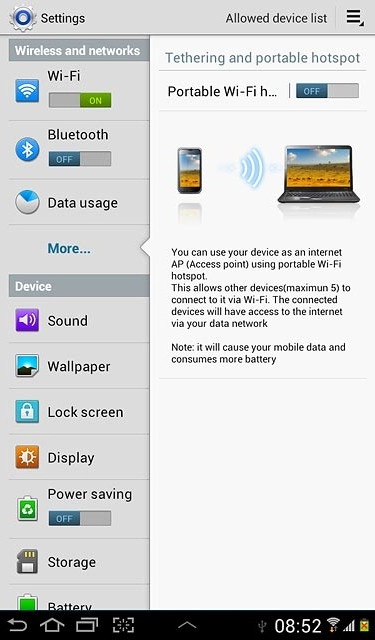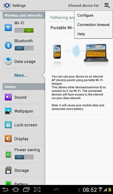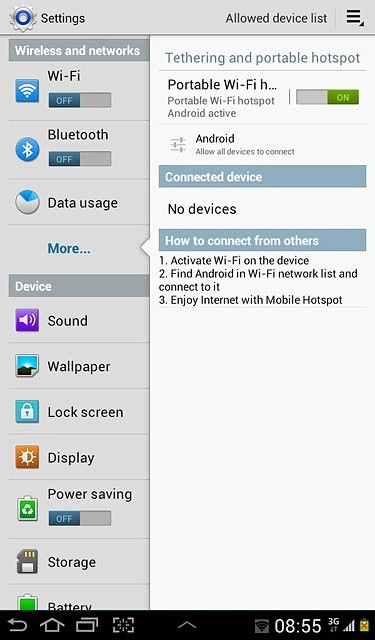 Turn on Wi-Fi hotspot