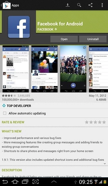 When the application is downloaded and installed, you can use Facebook on your device. Click here for information on how to use Facebook.