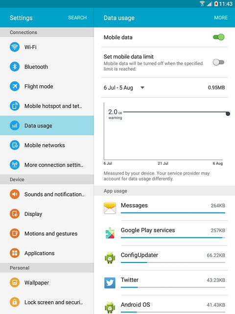 Your tablet's data usage is displayed.