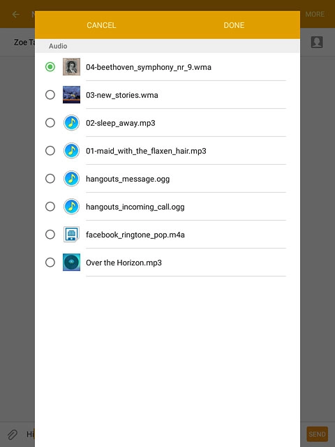 Press the required audio file.