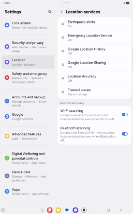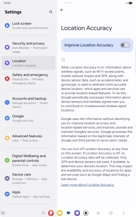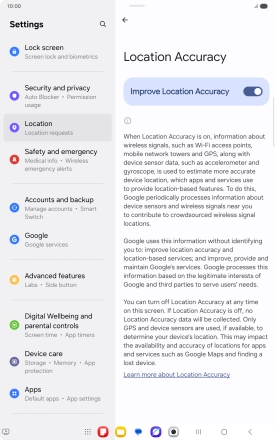 If you press the indicator next to "Improve Location Accuracy" to turn off the function, your tablet can find your exact position using the GPS satellites but it may take longer as there is no access to supplementary information from the mobile network or nearby Wi-Fi networks.