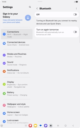 Press the required Bluetooth device and follow the instructions on the screen to pair the device with your tablet.