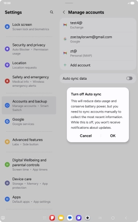 Press the indicator next to "Auto sync data" to turn the function on or off.