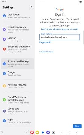 If you don't have a Google account, press Create account and follow the instructions on the screen to create an account.