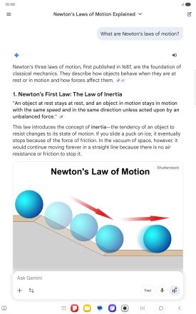 Press the share icon and follow the instructions on the screen to go to and share the required content on the tablet screen with Gemini.
