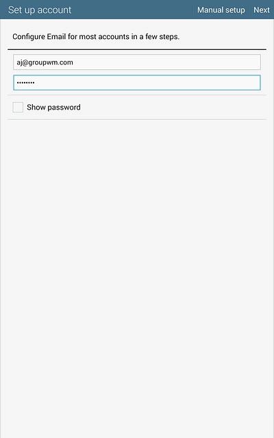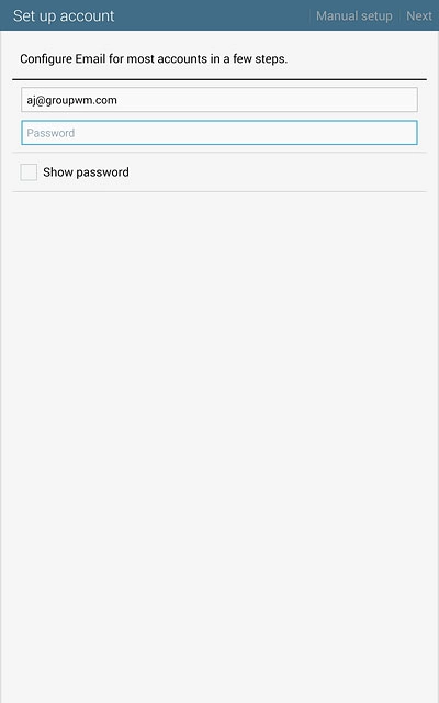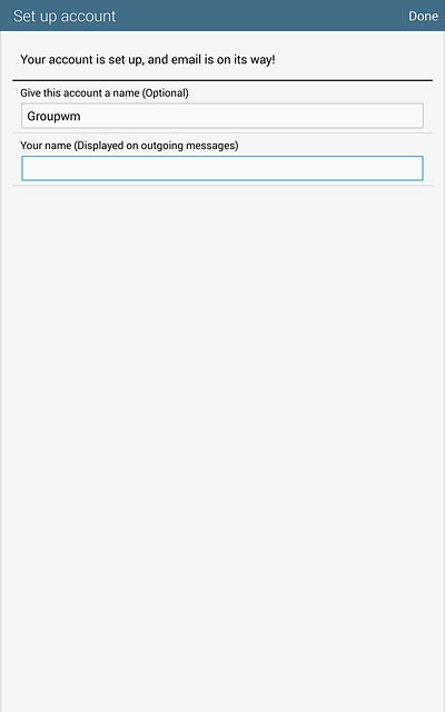 If the display tells you that your email account has been set up, follow the instructions on the display to select more settings and finish the setup.