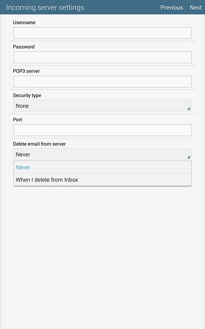 Press the field below "POP3 server" and key in the name of your email provider's incoming server.