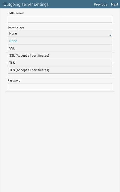 Press the field below "Password" and key in your password for your email provider's outgoing server.