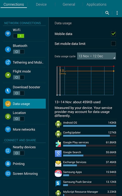 Press Data usage.