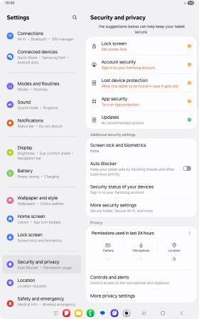 Press Security and privacy.