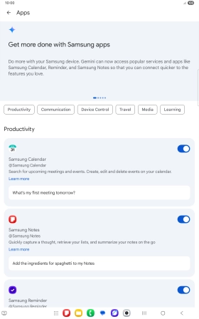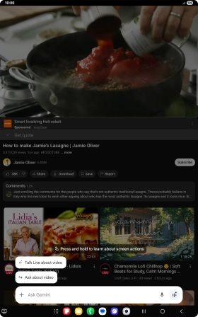 Press the share icon and follow the instructions on the screen to go to and share the required content on the tablet screen with Gemini.