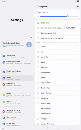 To use a different ring tone than the default ones, press the add ring tone icon and follow the instructions on the screen to select the required ring tone.