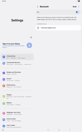 Press the required Bluetooth device and follow the instructions on the screen to pair the device with your tablet.