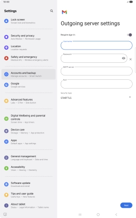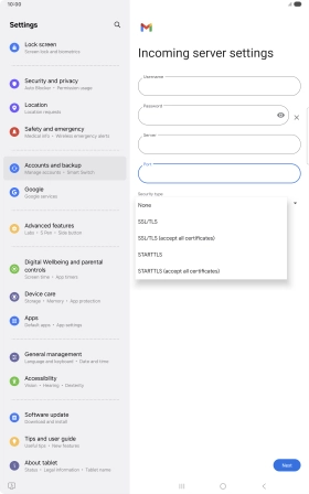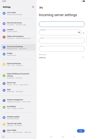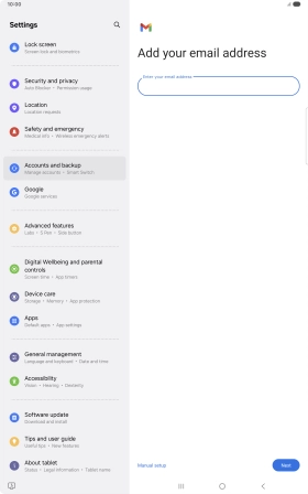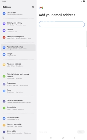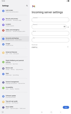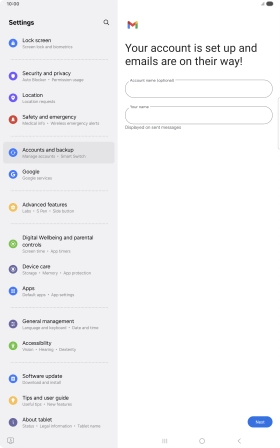 If this screen is displayed, you email account has been recognised and set up automatically. Follow the instructions on the screen to key in more information and finish setting up your tablet.