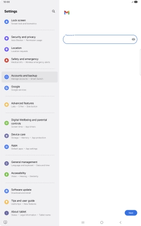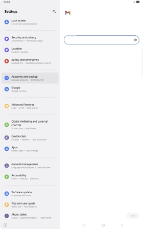 Press the field below "Password" and key in the password for your email account.
