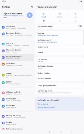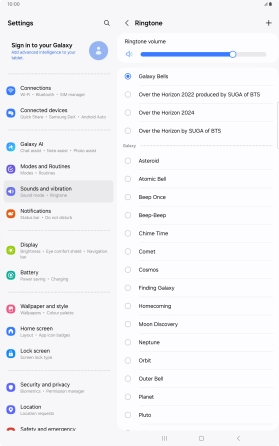 Select ring tone on your Samsung Galaxy Tab S10+ 5G Android 14
