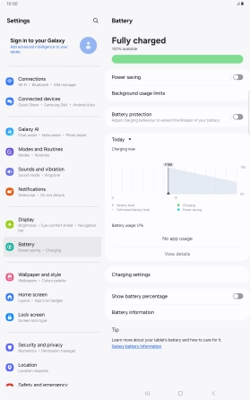 Extend the battery life on your Samsung Galaxy Tab S10+ 5G Android 14