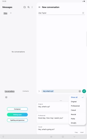 Using AI, you can change the style of writing in your messages. The function works with all of Samsung's own apps as well as message and social media apps.