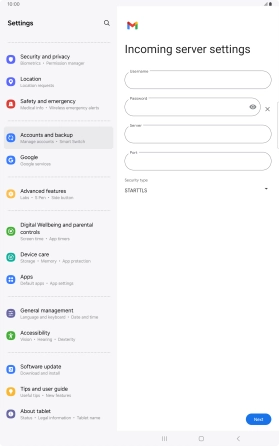 Set up your Samsung Galaxy Tab S10+ 5G Android 14 for IMAP email