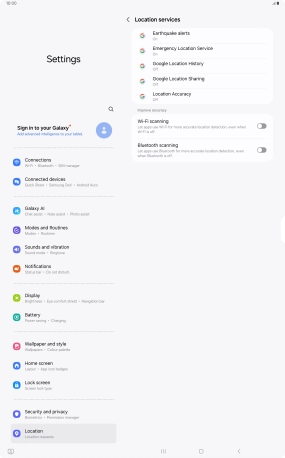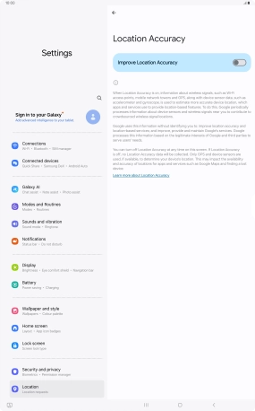 If you press the indicator next to "Improve Location Accuracy" to turn off the function, your tablet can find your exact position using the GPS satellites but it may take longer as there is no access to supplementary information from the mobile network or nearby Wi-Fi networks.