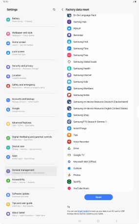 Press Delete all. Wait a moment while the factory default settings are restored. Follow the instructions on the screen to set up your tablet and prepare it for use.