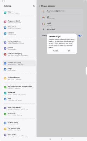 Press the indicator next to "Auto sync data" to turn the function on or off.