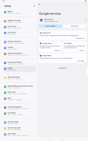 Select settings for Find My Device on your Samsung Galaxy Tab S10 Ultra 5G Android 14