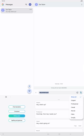 Using AI, you can change the style of writing in your messages. The function works with all of Samsung's own apps as well as message and social media apps.
