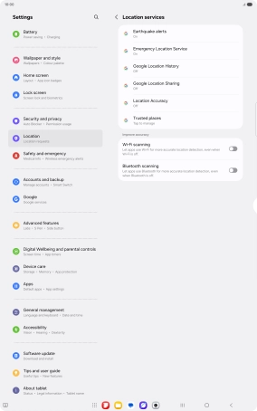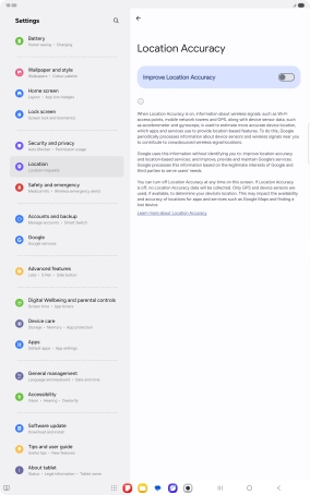 If you press the indicator next to "Improve Location Accuracy" to turn off the function, your tablet can find your exact position using the GPS satellites but it may take longer as there is no access to supplementary information from the mobile network or nearby Wi-Fi networks.