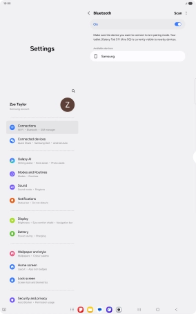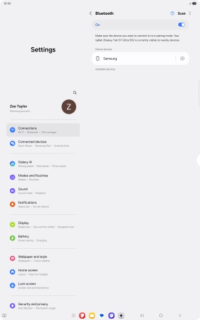 Press the required Bluetooth device and follow the instructions on the screen to pair the device with your tablet.