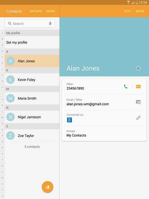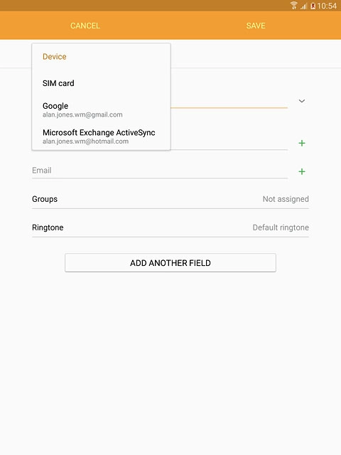 If you select an account, the contact is attached to this account but is also displayed on your tablet.