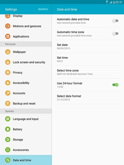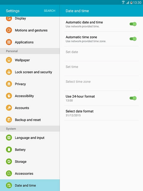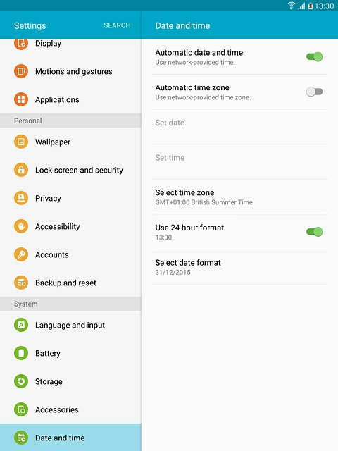 If you want to set the date time manually, you need turn off automatic date and time update and press Set date and Set time. Follow the instructions on the display to set the date and time manually.
