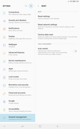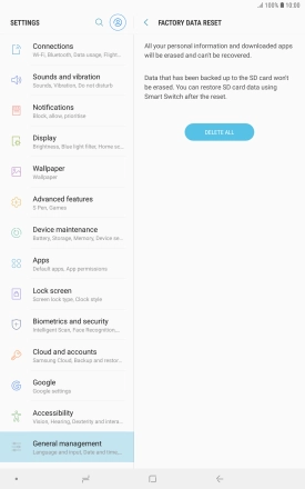 Press DELETE ALL. Wait a moment while the factory default settings are restored. Follow the instructions on the screen to set up your tablet and prepare it for use.