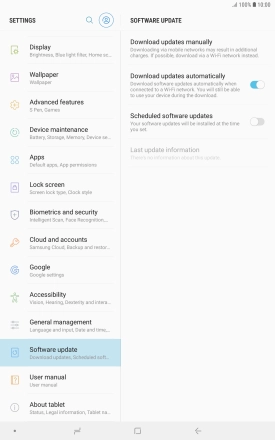 Press Download updates manually. If a new software version is available, it's displayed. Follow the instructions on the screen to update the tablet software.