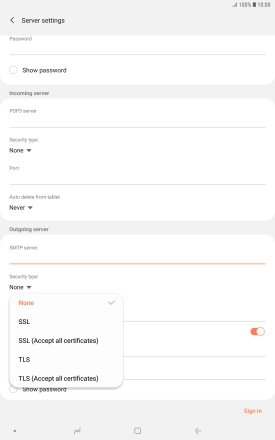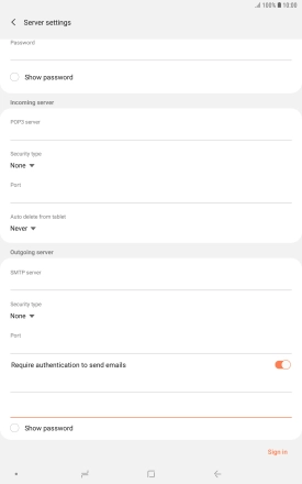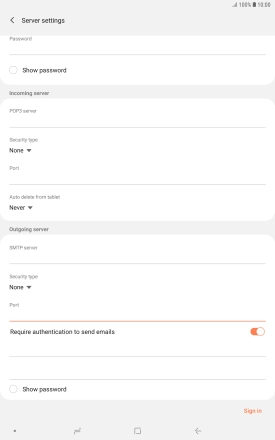 Press the password field and key in the password for your email provider's outgoing server.