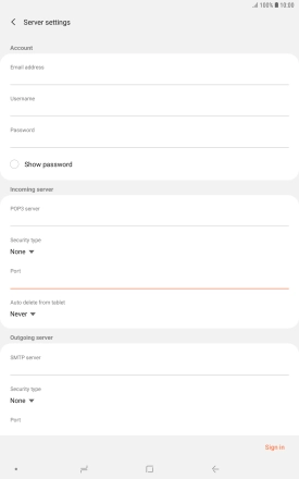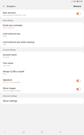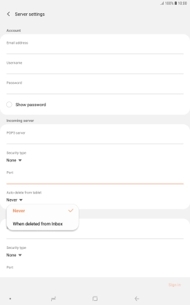 Press When deleted from Inbox to delete email messages on the server when you delete them on your tablet.