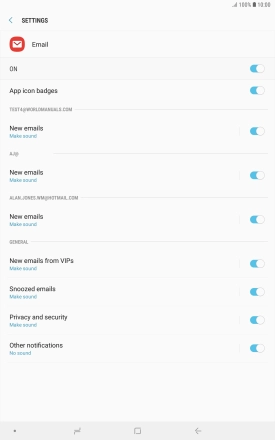 Press the indicator next to "New emails" below the required email account to turn the function on or off.